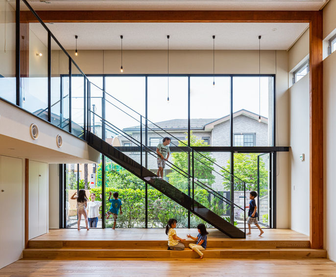 通過這種方式這裡的「Akiruno森林之家」是供兒童、員工和鄰居使用的空間,在充滿天然木材的感官空間中,人們學習自然,培養他們的敏感性和獨立性並養護植物和愛護事物。
