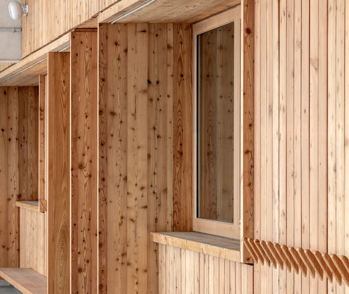 這是一所為3至11歲的兒童設計學校,如何確保他們喜歡上學,並使他們覺得學習環境既溫馨又有保護性,人體工程學設計、舒適性以及對兒童身高的關注,一直指導著整個設計工作,直到最細微的細節,為了創造與礦物質表面的驚喜對比,室內營造出地中海風格的愉悅而豐富多彩的感覺,曲線的柔軟度和木材的使用,使這個孩子們的世界變得溫暖而被包圍,而木材是來自阿爾卑斯山的落葉松木材製成,使用上用於覆蓋木板的主要牆面、教室和環形走廊之間的玻璃以及家具擺設。