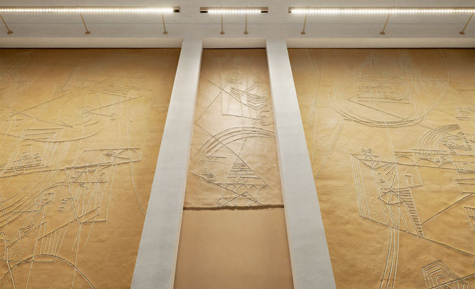 該設計受到豐富多彩過去的啟發,透過展示1890年代的彩繪天花板與壁畫並和1950年代的現代塗鴉藝術品並列,揭示了該建築迷人多層次的歷史,新設計為隱藏了數十年的壁畫慶祝創造了一個城市與歷史真正交會的空間,該設計是Apple設計團隊與Foster+Partners的集成工程和設計團隊密切合作的結果。