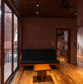 Brick Cave角落的半戶外院子,能夠藉由紅磚交疊的縫隙欣賞寬闊的天空、花園與巷弄,這對於一個典型的越南北部熱帶季風氣候,是非常愉悅的空間。因此,Brick Cave營造出一個大型的半戶外開放空間,為住戶圍塑出有趣和愉快的家,也能在此舒適且安全的居住著。
