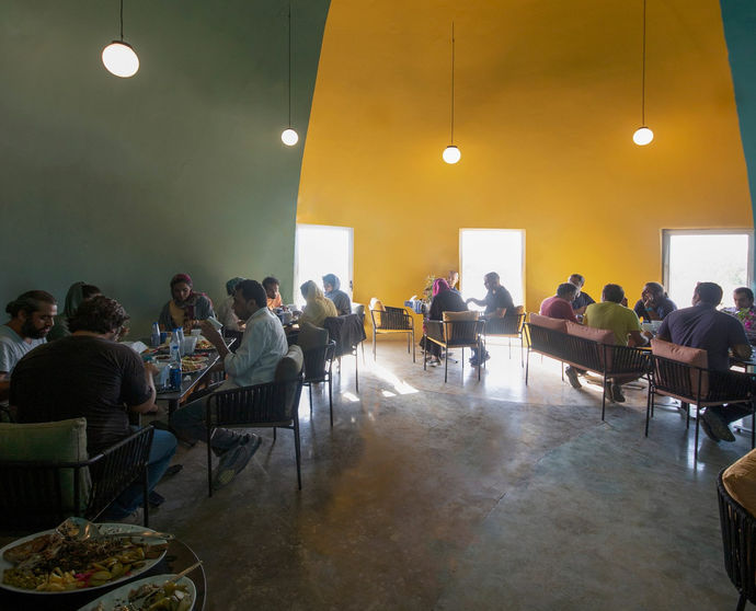 基地內的所有圓頂均以紅色、黃色、藍色和綠色的明亮陰影繪製,使渡假村具有豐富多彩的外觀。顏色的使用延伸至室內空間、牆壁、地面等進行塗漆,家具也以紅色、黃色、藍色和綠色進行搭配與調和。