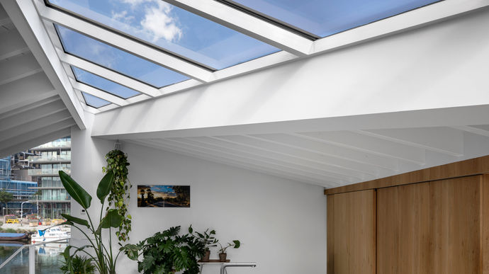 在Floating Home內走動時,水上景觀會在家裡若影若現,在地下室可以直接看到水平面的景色;在客廳時靠在沙發上就可以欣賞美麗水鏡,到達頂層的廚房空間時更可以一覽運河的南北側。屋頂的切口造型使屋頂形成了一個寬敞的露臺空間,從這能以更高角度欣賞運河美景。