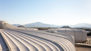 參觀者接近一個引人注目的半封閉的肋狀圓形量體,該量體用作指引方向的空間,並具有朝向關鍵視野的玻璃窗口,淡淡的沿海色調使室內光線變得柔和,並由天窗照明,在整個施工過程中,優先考慮被動式設計原則,以保護內部空間免受沙漠熱氣的影響,並降低建築所需的整體運行耗能。