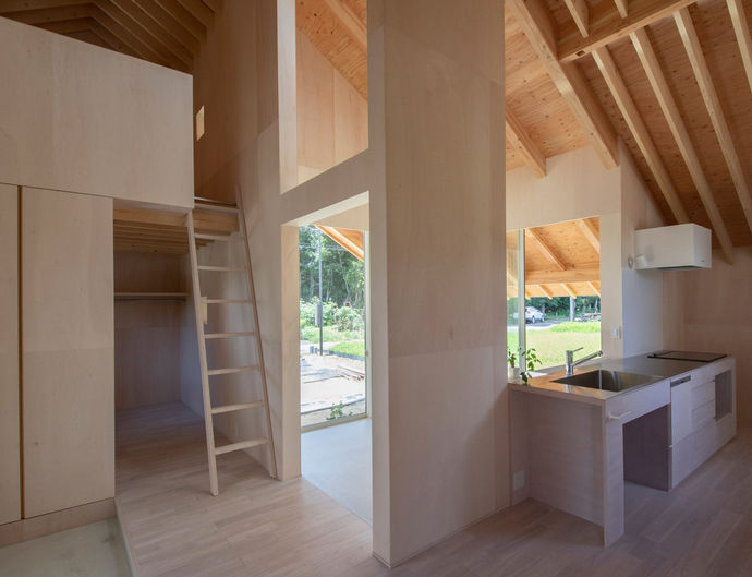 一樓的配置沿著十字型的動線依序是客廳、廚房與書房,穿過該動線後其餘的地方皆作為兩層樓的臥室空間,十字形的配置意味著所有的室內空間皆與四塊景觀花園相鄰,以達到Kasutoshi Sasaki「以花園作為住家生命的延伸」的設計主軸。Kasutoshi Sasaki解釋說:「屋簷下的寬敞空間使生命可以延伸至戶外;在當今日本多數的房屋都是非常封閉的且非常注重隱私空間,所以導致日本的房屋很少將戶外納入室內作為整體的設計延伸。」