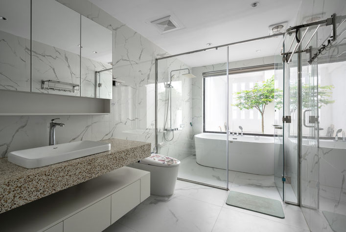 在設計三層建築時,實現空間和組織靈活性是概念過程的關鍵部分,美容院佔據首層兩層,而家庭活動的私密性則保持在頂層,考慮到室內流通,它有三個主要入口,分別供顧客、員工和居民進出,流通的佈局需要在橫向和縱向上合乎邏輯,確保商業和家庭活動兩個功能獨立運作,此外主中庭旨在連接所有工作空間,以獲得壯觀的景色。