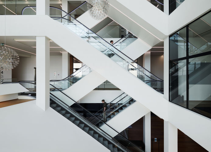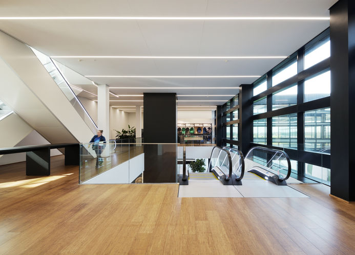新大樓匯集了公司的行政和物流中心,所有設施都圍繞中庭佈置,貫穿整個建築,為涉及公司所有不同部門的內部工作流程,創造了一個公共平台,一個明亮、開放和充滿活力的環境。