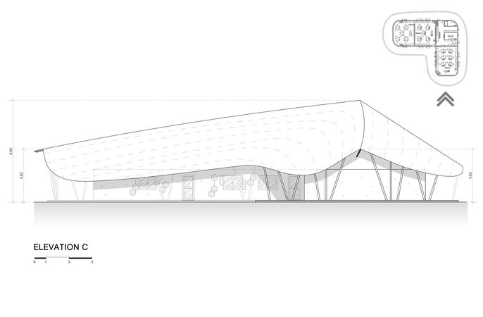 科學實驗中心包刮了三個空間,化學、物理與生物實驗室,並結合了最新的設備,例如通風櫃、空氣清淨系統和緊急消防系統等;建築物配置成一個L型,使得竹屋頂設計從上放看起來像一顆心型,中間區域是所有實驗室材料的供應與儲存區,由中心向外分配到不同領域的教學空間之中,該實驗中心透過簡單的配置吸引了不同的眼光,同時在實驗室空間中展現了現代的結構計算,使裸露的竹子構才可以很圓滑的結合在一起。