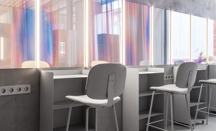 設計為多機能的使用空間以滿足不同的工作需求,包括:研討會、講座和公開演講,在空間裡擁有7個化妝室和4個美甲室、接待處與小型演講空間,所有功能區均由窗簾隔開,伴隨著半開放方式。