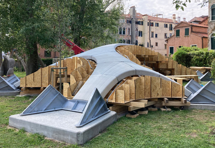 「Striatus」這個名字反映了它的結構邏輯和製造過程,混凝土與主要結構力正交的層印刷,以創建不需要加固的「條紋」僅受壓索道結構,3D列印可用於建造承重混凝土結構,這種結構需要的材料顯示減少且無需鋼筋或砂漿,來自Block Research Group的ETH建築師與工程師、Zaha Hadid Architects和業內其他合作夥伴合作,展示了這如何與威尼斯的人行橋配合使用。
