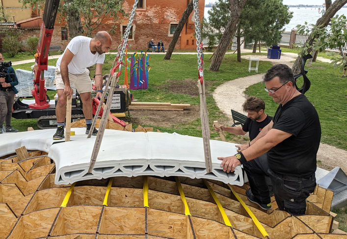 全世界數以百萬計的新建築正在用鋼筋混凝土建造,但這種類型的建築會產生大量的二氧化碳排放,在這方面,用於加固的鋼材和混凝土的水泥變成其中問題,ETH研究人員現在提出了一種在實際計畫中減少兩者的方法,而Block Research Group與Zaha Hadid Architects的計算和設計小組合作,在威尼斯的一個公園內建造了一座16x12公尺的拱形人行橋,並且完全沒有加固。