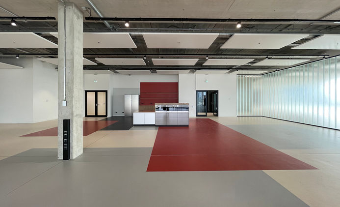 為了將廣闊的地板區域組織成不同的空間,會議室和半透明的鑄玻璃牆與地板一起戰略性的分佈,地板顏色概念為分區增加了另一層,定義了沒有物理邊界的功能區域,曾經以室內為中心的購物中心已被重新構想為生產力、創造力和社區的外向中心。