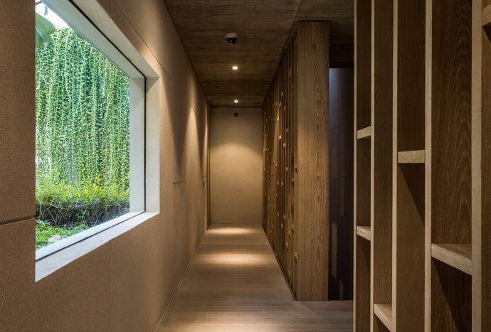 設計團隊以形成均質網絡構思了一個細鋼網覆蓋層將私人空間相對分離成為最特別之處,在不久的將來區別於冰冷的混凝土和鋼網系統中,爬藤類植物會佈滿整個鋼網體系,並為房屋創建新鮮的綠色過濾器,建築師將捲簾百葉系統發揮到一個最大程度清晰分隔室內、外,同時計算了結構體厚度,以便業主既有更多空間可用也保持建築輕盈感。