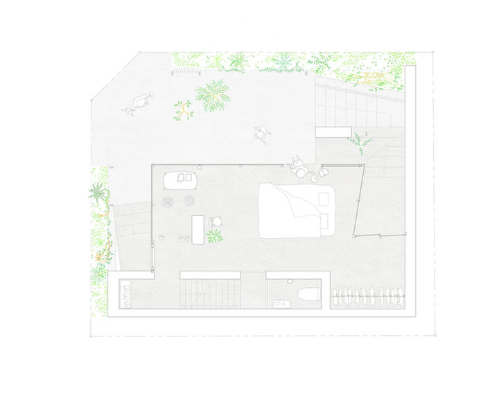 通過一個不斷變化的環境中找到一個適宜居住的地方,就像一座隱藏在公園裡人行道裡的建築物,它將創造一種新的距離感和與家人的關係,由於預計未來生活方式會發生各種變化,我們希望居民在新家中度過時光,自由的為自己和家人尋找住所。